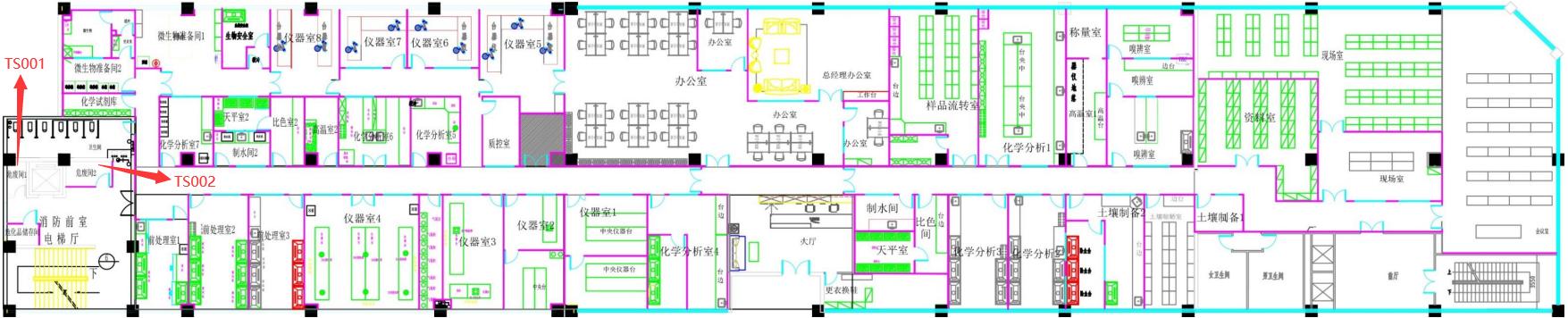 共設置2個暫存間,總面積8m2,其中TS001為3m2,TS002為5m2。